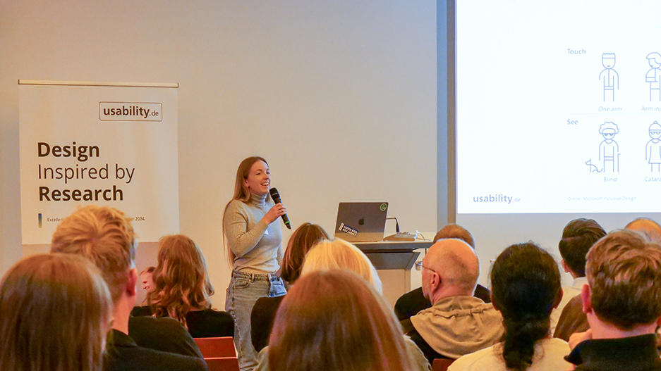 Luisa Schaffhirt nahm uns mit in die Welt der digitalen Barrierefreiheit und zeigte die Möglichkeiten aber auch die Grenzen von KI in diesem Bereich auf. Wahre Empathie mit den Nutzenden baut sich nur dann auf, wenn Barrierefreiheit mit Nutzenden getestet wird. Wie Nutzertests mit Menschen mit Behinderungen professionell durchgeführt werden, beschreibt usability.de auch hier: Digitale Barrierefreiheit testen