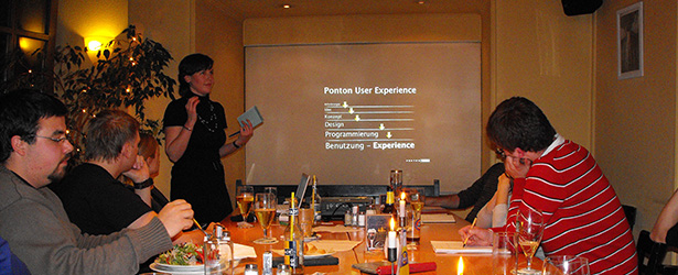 Bei Bier, Tee und Snacks klang der Abend schließlich aus. Teilnehmer und Organisatoren waren rundherum zufrieden. Neben den wunderbar „benutzerfreundlichen“, unterhaltsamen und spannenden Vorträgen trugen sicher auch die Räumlichkeiten zu einem gelungenen Abend bei: Allein die Anordung der Tische in einer gemütlichen „Tafel“ sorgte für eine diskussionsfreudige Runde, bei der es auch ein leichtes war, andere Teilnehmer und ihre Usability-Erfahrung kennenzulernen.