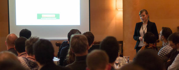 Saskia Niemann, Studentin der Informationswissenschaften an der Universität Hildesheim, stellte spannende Ergebnisse aus ihrer Forschung zum Thema Online-Umfragen im mobilen Kontext vor. Sie interessierte bei ihrer Untersuchung vor allem, inwieweit man eine veränderte Art der Interaktion im mobilen Kontext einsetzen kann um Nutzer zu motivieren. „Nutzer wollen auf dem Handy keine langen Antworten über die Tastatur eingeben oder kleine Radiobuttons mit dem Finger antippen“, so ein Ergebnis der Untersuchung. Saskia zeigte anhand eines Prototypen, den sie für eine mobile Online-Umfrage im E-Commerce umgesetzt und mit Nutzern getestet hat: Angaben zur Zufriedenheit über Slider eingeben zu können oder einen Daumen hoch in einen Daumen runter zu verändern mache den Nutzern viel mehr Spaß. Dies führe, kombiniert mit weiteren Aspekten, die es zu beachten gilt, zu einer höheren User Experience. „Normalerweise mag ich keine Online-Umfragen, aber die hat echt Spaß gemacht“, zitierte Saskia so auch eine Teilnehmerin aus ihrem Usability-Test.