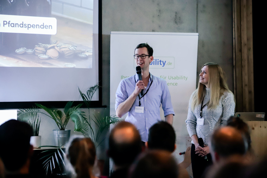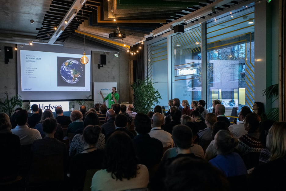 Im Anschluss stellte Gesine Quint von usability.de ein Projekt vor, das sich damit beschäftigt, Menschen zu nachhaltigerem Verhalten zu bewegen. Im Rahmen einer studentischen Abschlussarbeit, die gerade in Kooperation mit usability.de durchgeführt wird, untersuchte Helene Spiess mit Hilfe von Usability-Tests welche Wirkung so genannte Digital Green Nudges auf das Nutzerverhalten haben.